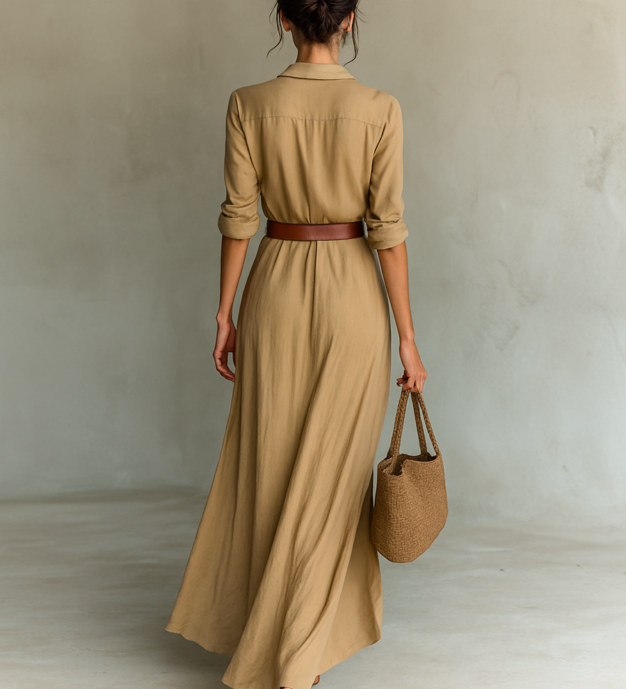 Živa | Dolga maxi obleka z ovratnikom in pasom