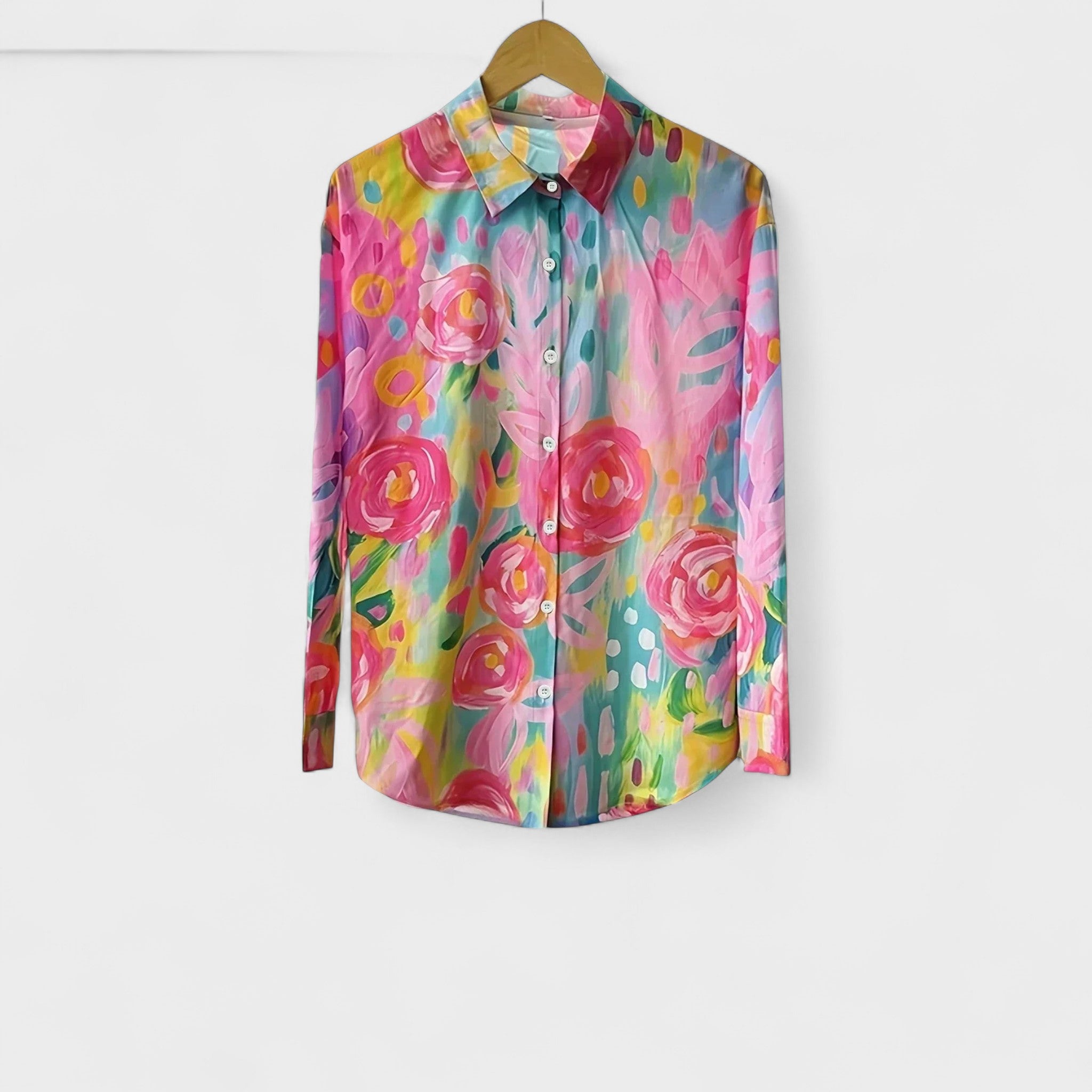 Odkrijte lahko, moderno in vsestransko bluzo, ki združuje udobje in eleganco v vsakem detajlu. Njen umetniški vzorec spremeni tudi najpreprostejše kombinacije v oblačilo polno osebnosti in sloga.