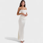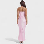 Dizajnirana za ženske, ki rade izstopajo, obleka Clara združuje kroj korzeta z mehkimi satenskimi materiali, ki ovijajo silhueto. Izrez v obliki srca in drapirani izrez ustvarjata eleganten in zapeljiv videz, popoln za nepozabne noči.
