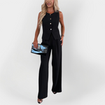 Eleganten videz: Odlično krojen top z gumbi in ravne hlače zagotavljajo rafiniran in ženstven izgled.