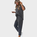 Uživajte v modernem udobju s tem co-ord kompletom, ki združuje minimalizem in funkcionalnost. Idealno za mestne sprehode, kavarne ali sproščene trenutke doma.
