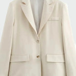 Moderen oversized sako, ki združuje udobje in eleganco. Ohlapna linija mu daje karakter uličnega sloga, medtem ko brezčasni dizajn omogoča vsestransko uporabo.