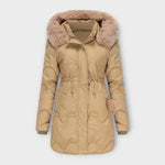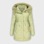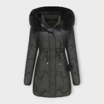 Elegantna zasnova: S kapuco in nastavljivimi manšetami, plašč Sabrina združuje funkcionalnost in stil, kar vas pripravi na vsako priložnost.
