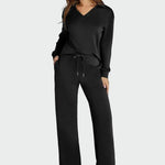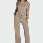 Praktičen in eleganten dvodelni komplet, zasnovan za udobje med potovanji. Ohlapen kroj nudi svobodo gibanja, medtem ko minimalistični stil omogoča vsakodnevno uporabo in posebne priložnosti.